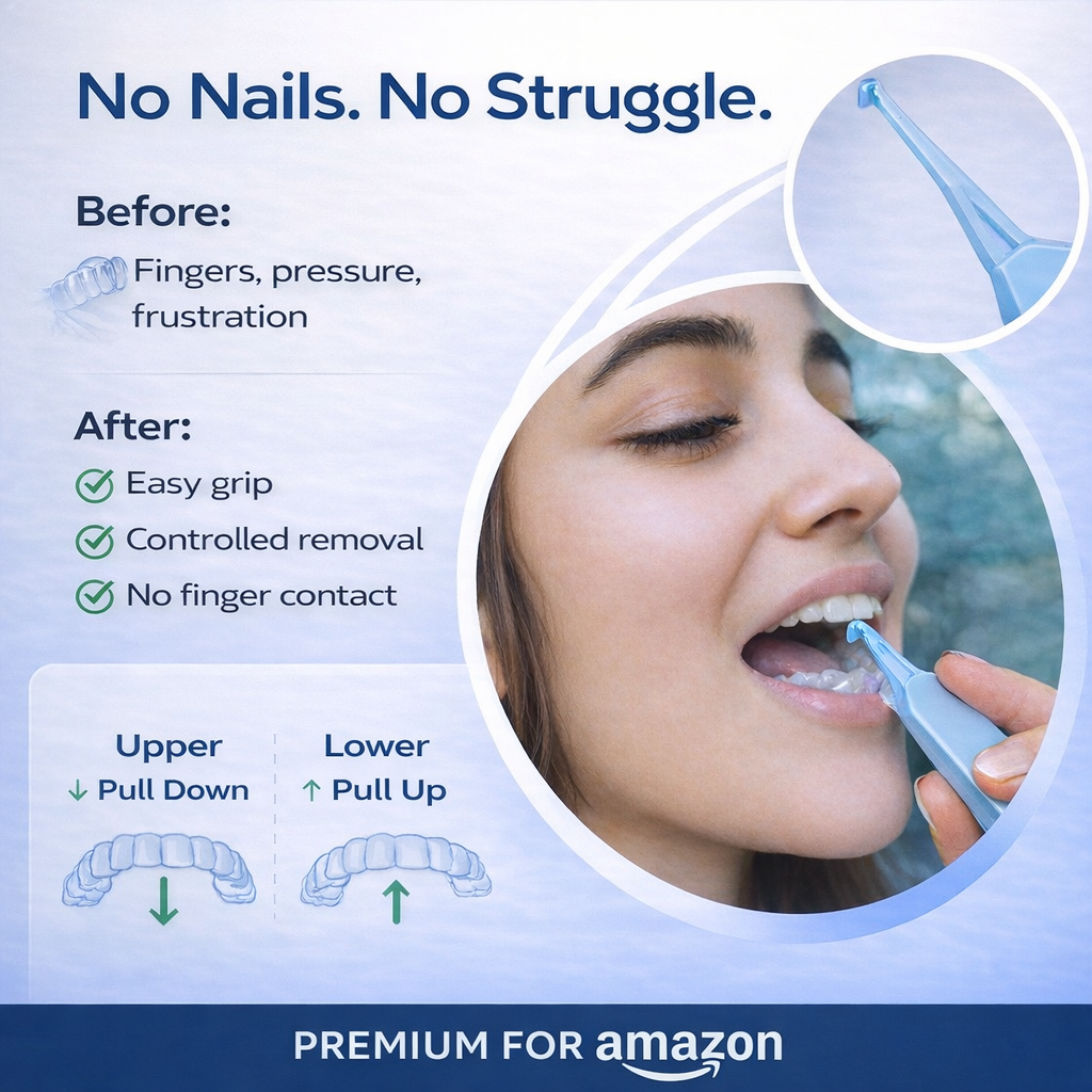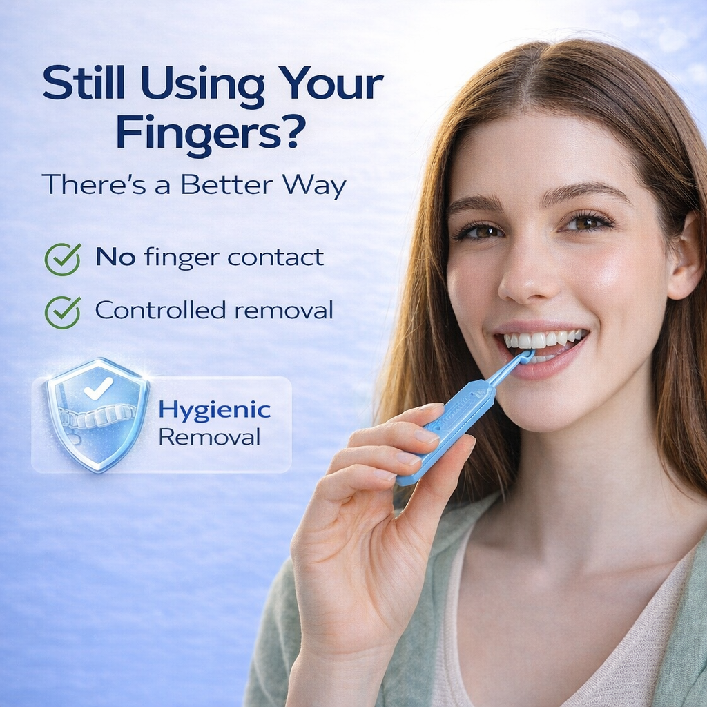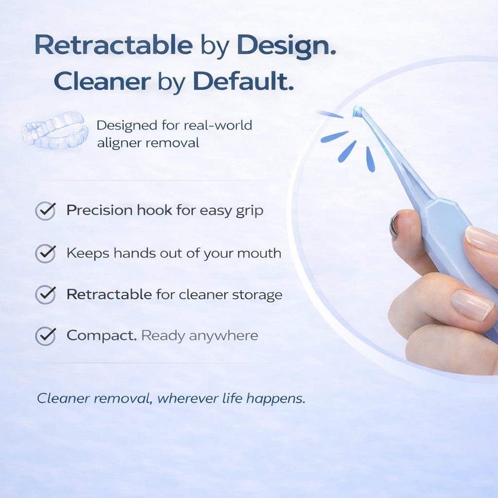 EASY-TO-USE ALIGNER REMOVAL TOOL - The compact and portable aligner remover ensures effortless and comfortable removal of aligners, retainers, or ortho bands. Ideal for use before meals, teeth brushing, or when traveling. Hygienic and user-friendly for everyday convenience. Pull down/pull up. Pull tool