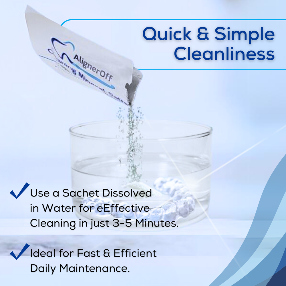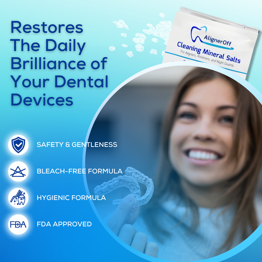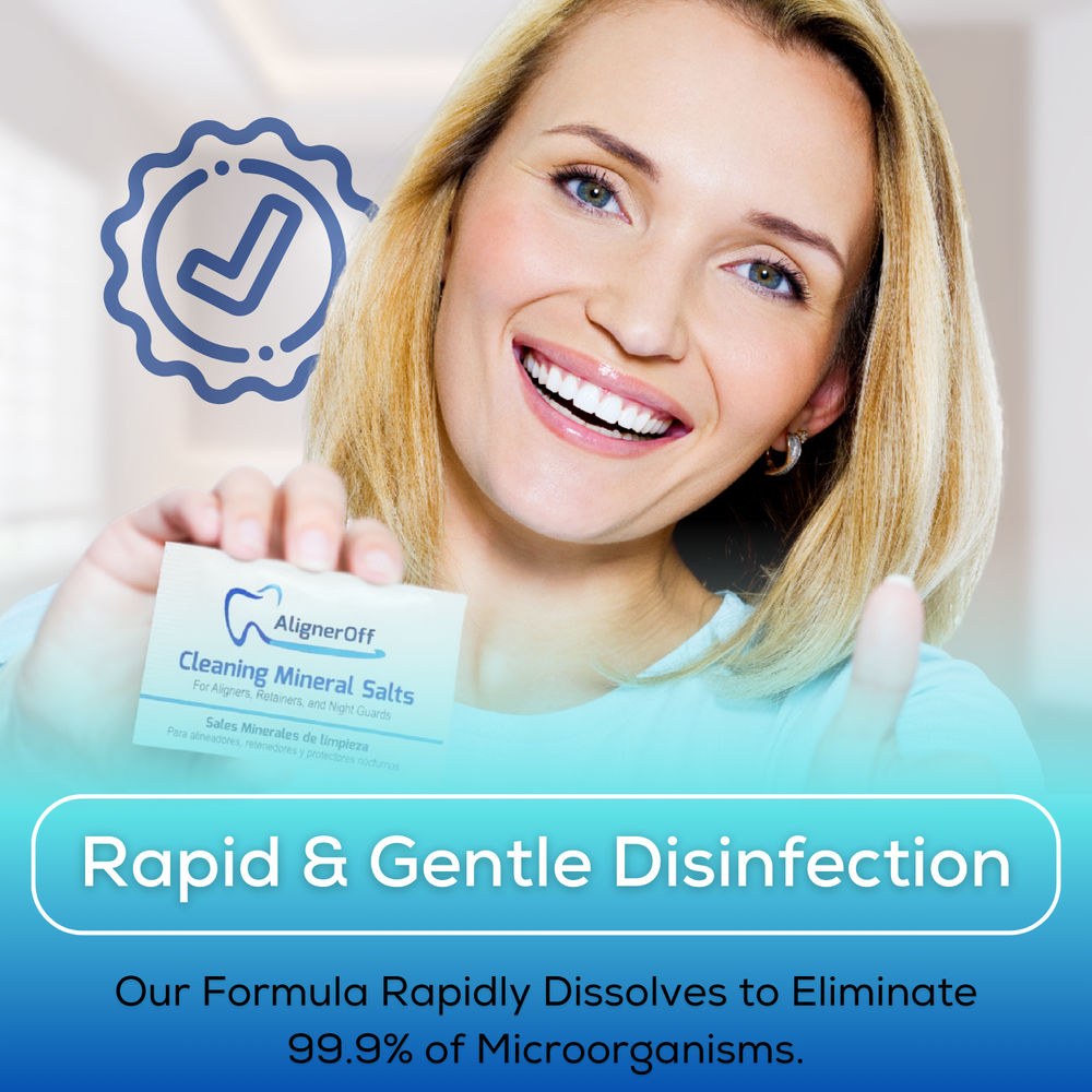 POWERFUL CLEANING FOR DENTAL APPLIANCES- Achieve deep cleaning without damage using AlignerOff Cleaning Mineral Salts. This fast-dissolving formula effectively removes cloudy films, plaque, stains, and odors from aligners, retainers, night guards, dentures, and all dental appliances.